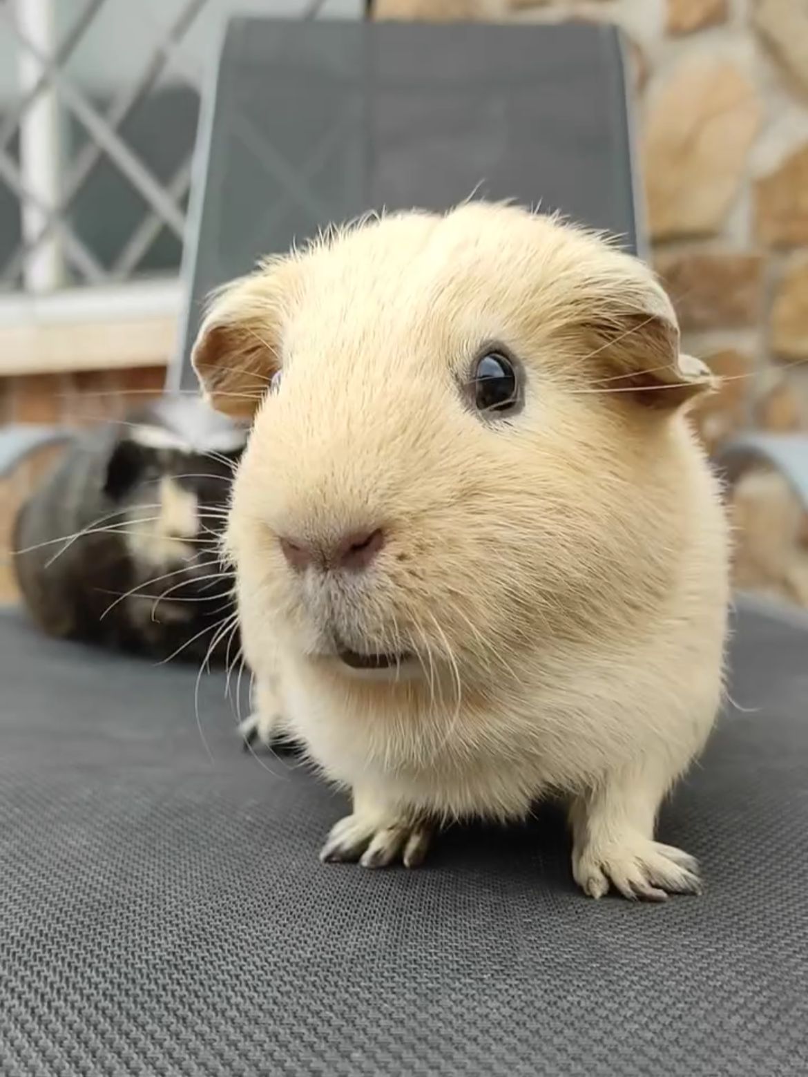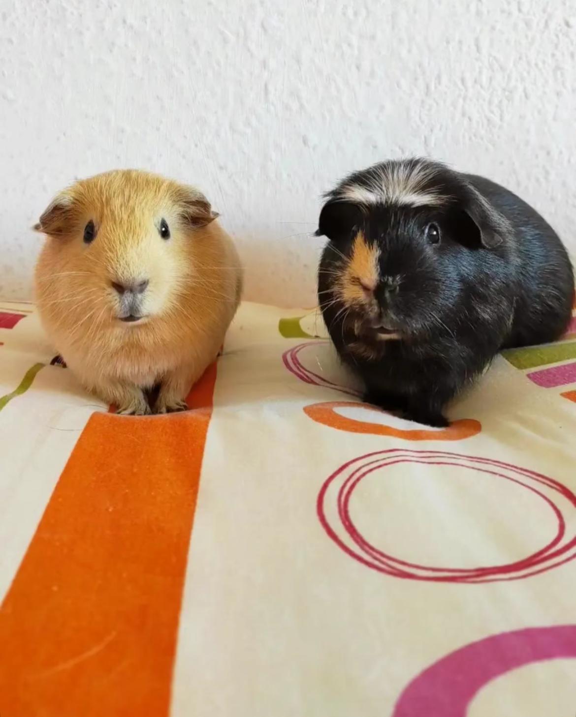 Duque y Patata son dos cobayos que nos ha cedido un particular. Duque (negro) tiene aproximadamente 4 años y, aunque está operado de un tumor de mama, se encuentra recuperado del todo. Patata (marrón), es más joven, tiene 2 años más o menos. Viven juntos desde hace tiempo y les encanta la lechuga, tener buen heno a su disposición y una casa donde refugiarse y dormir a pierna suelta.