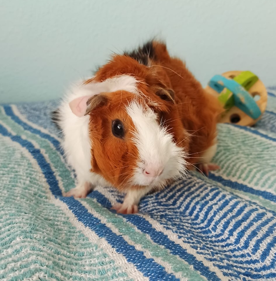 Su casa de acogida nos cuenta que es una cobaya muy curiosa. Se ha recorrido gran parte de su casa provisional, adem谩s no tiene mucho miedo lo cual es genial 馃檹